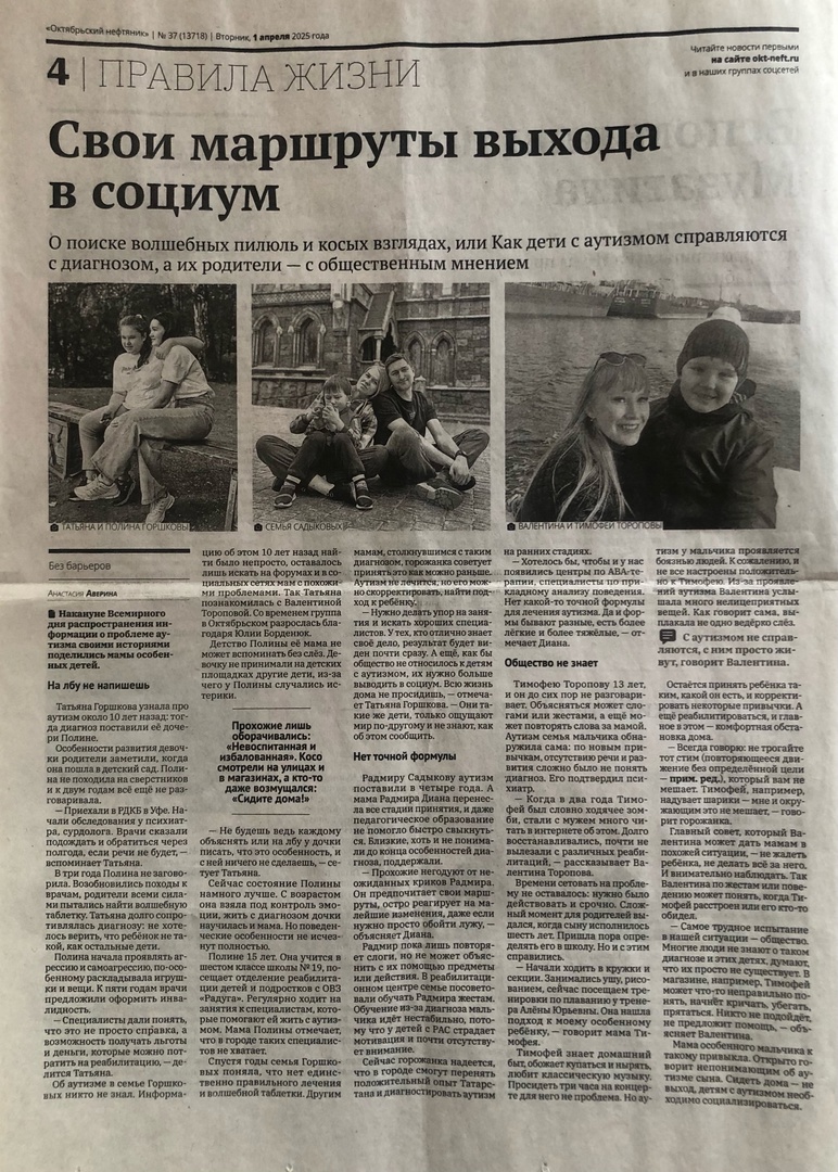 На сегодняшний день в городе Октябрьский Республики Башкортостан проживает более 90 детей с аутизмом от 2 до 16 лет, 18 детей и подростков с синдромом Дауна и около 400 с другими нарушениями развития.