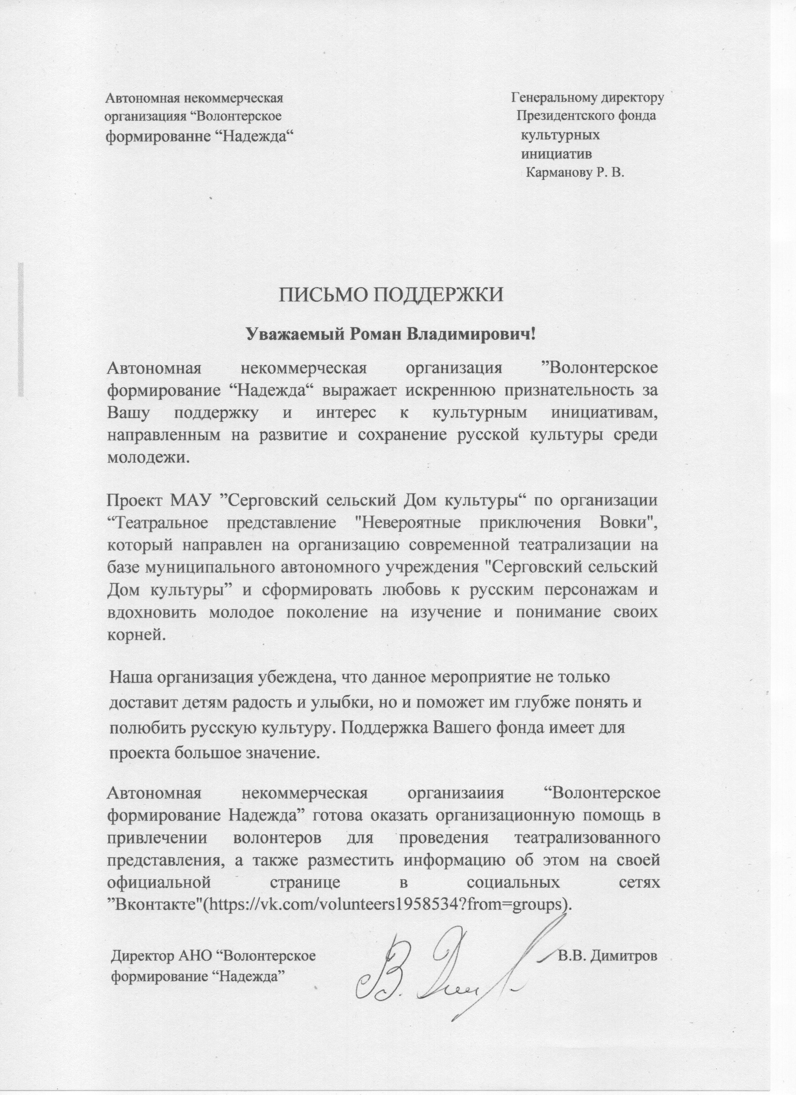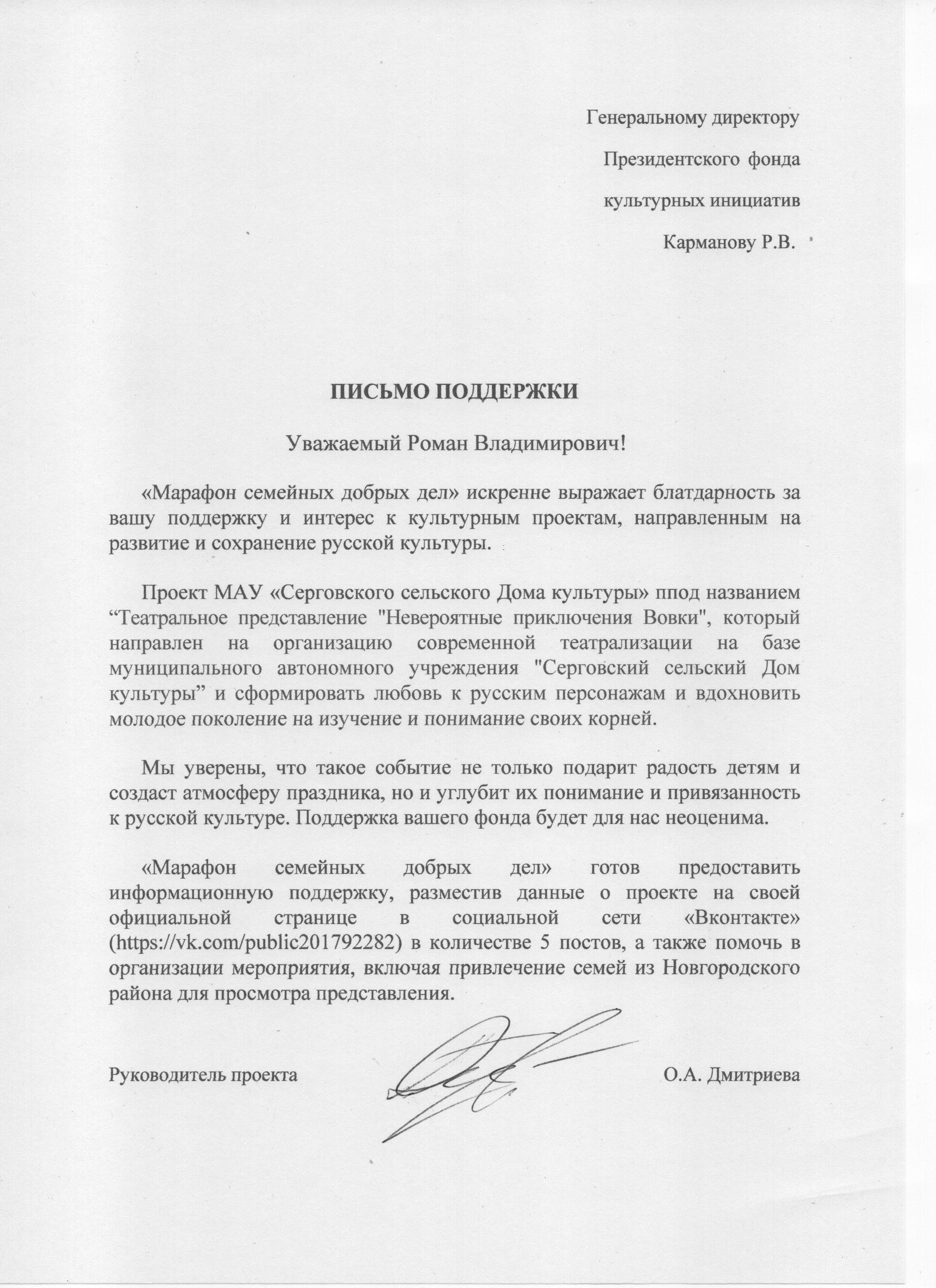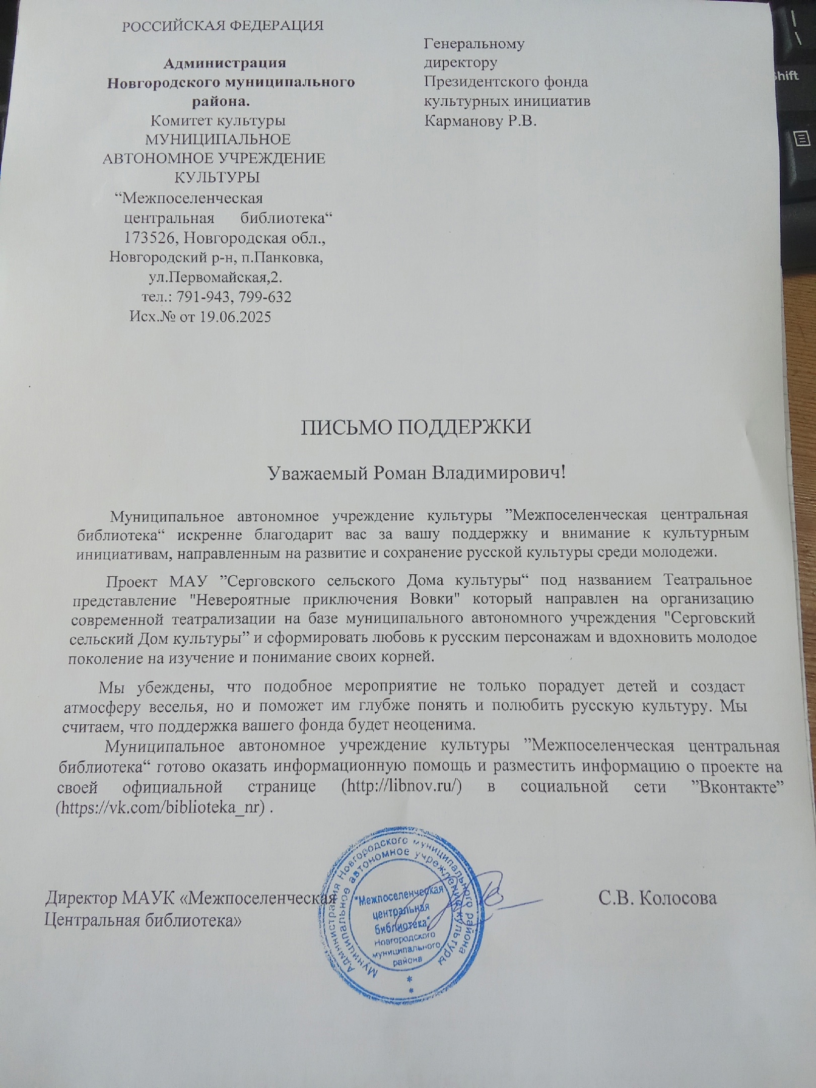 Созданы условия через организацию современной театрализации на базе муниципального автономного учреждения "Серговский сельский Дом культуры” для 30 семей с детьми от 5 до 17 лет Борковского сельского поселения и сформирована любовь к русским персонажам,а также вдохновлено молодое поколение на изучение и понимание своих корней.