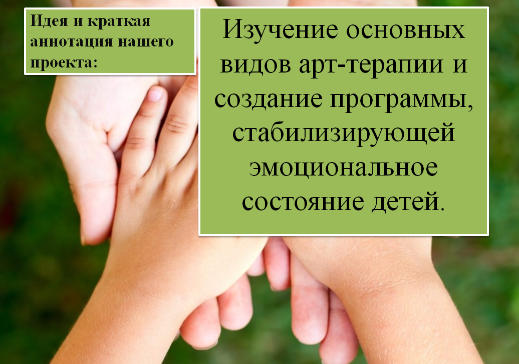 На сегодняшний день эмоциональное состояние детей в детских домах очень нестабильно, что мешает им социализироваться. Это можно видеть в особенности их внутренней позиции: • слабая ориентированность на будущее, • эмоциональная уплощенность, • упрощенное и обеднённое содержание образа «Я», • снижение уважительного отношения к себе, • несформированность избирательности (пристрастности) в отношении к взрослым, сверстникам и предметному миру, • импульсивность, • неосознанность и несамостоятельность поведения, • ситуативность мышления и поведения и многое другое. Данные психологические особенности детей, воспитывающихся в детских домах, домах ребёнка и интернатах, влияют на их коммуникативную деятельность. Таким образом, есть вероятность того, что ребёнок полностью закроется в себе, и не сможет существовать в обществе. В качестве инструмента для обеспечения эмоционального благополучия и психолого-педагогической поддержки детей можно успешно использовать арт-терапию. Благодаря разнообразию доступных видов арт-терапии мы можем написать образовательную программу, после чего воплотить её в жизнь.