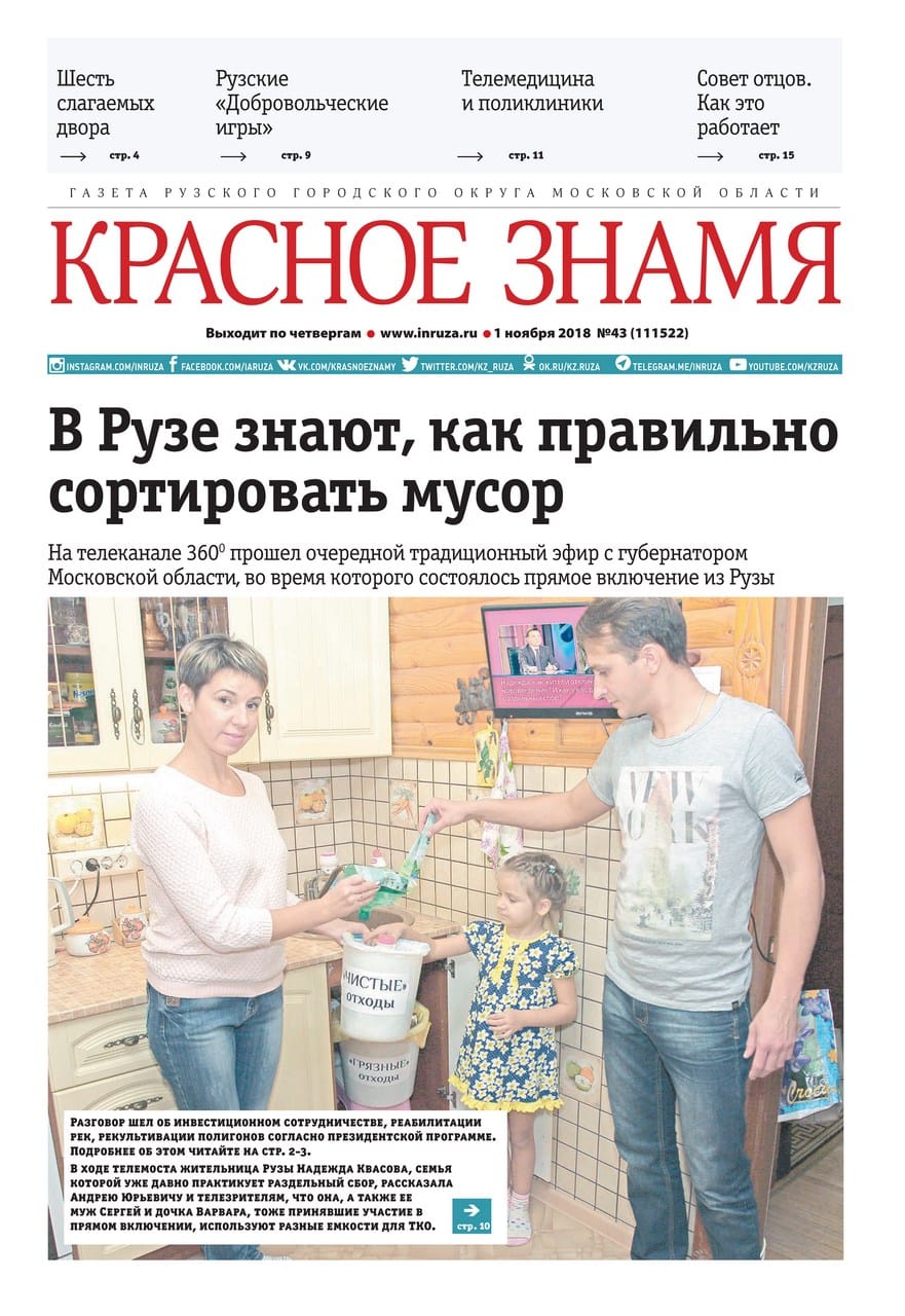 25 экосубботников и акций, 9 из которых с раздельным сбором отходов (2018-2023 гг., общее количество участников - 396, объем собранных отходов – более 3 тонн). Субботники проводятся на территории Рузского городского округа (улицы и парки г. Руза, лесные и прибрежные зоны Рузского и Озернинского водохранилищ) - флешмоб #ГрязиНет, акции «Чистый двор», «Нам по пути», сезонные субботники.