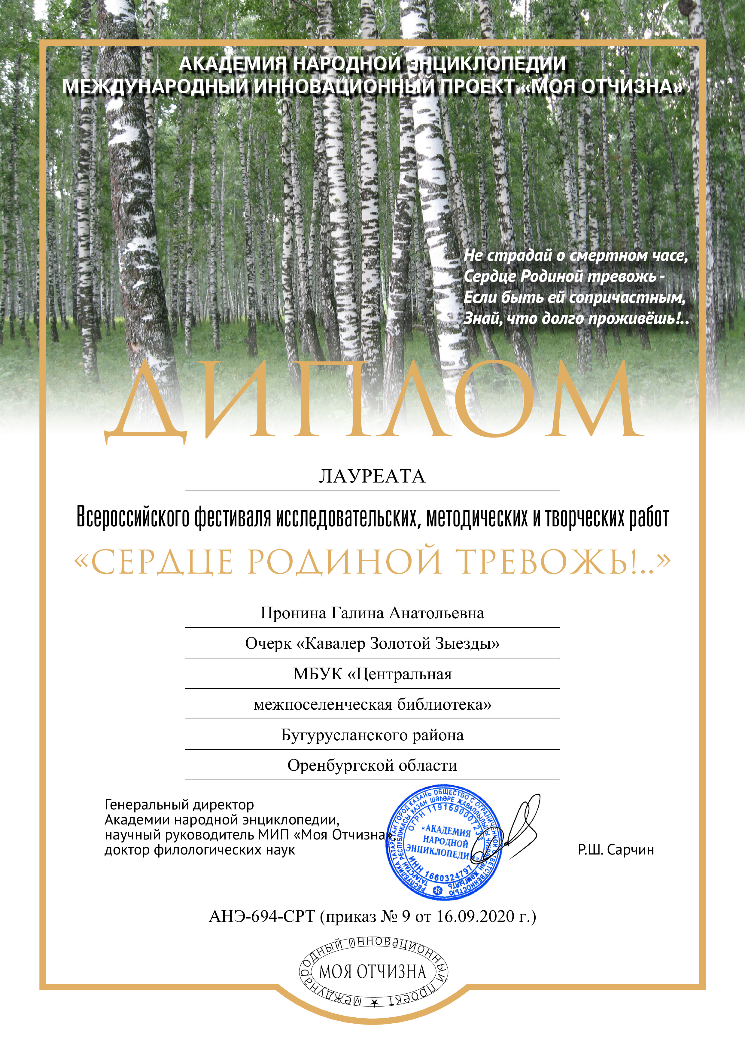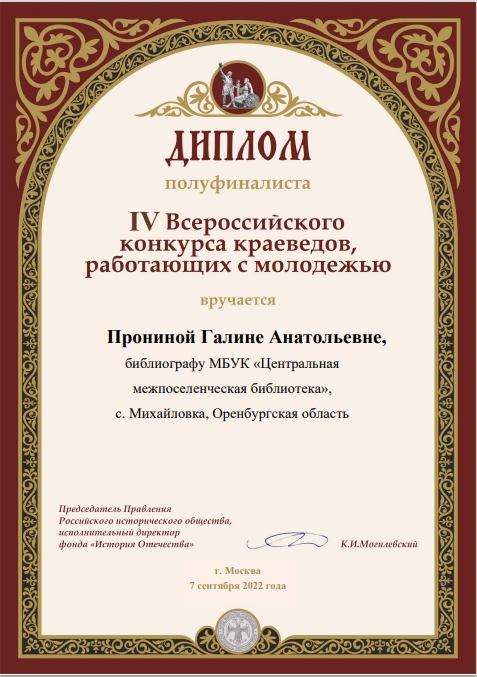 В рамках реализации данного проекта увеличилось число мероприятий краеведческой направленности на 30%, что повысило интерес к чтению краеведческой литературы, к сбору архивных материалов, начат сбор легенд, преданий, обрядов, воспоминаний старожилов. На основе этого материала воссозданы обряды и легенды таких сел, как Кирюшкино, Нойкино, Михайловка, Пилюгино, Благодаровка, Елатомка, Советское, Алексеевка, Тюрино, Лукинка, Пронькино, Краснояровка. И эта работа продолжается.