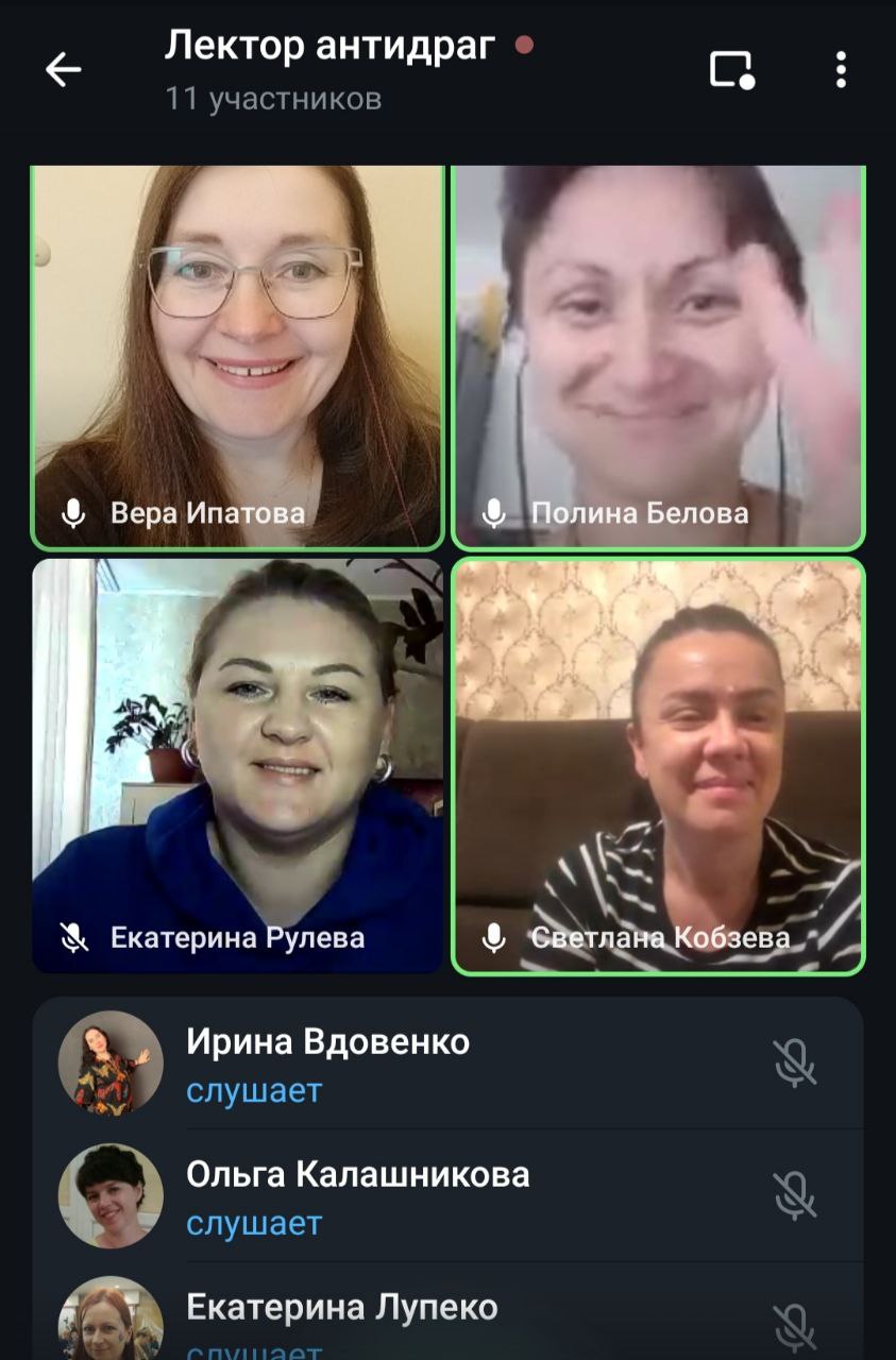 Провела онлайн-встречу с лекторами, которые проводят профилактические беседы для детей в учебных заведениях о вреде наркотиков. Познакомила их с руководителями БФ "Защити детей от наркотиков", чтобы они могли начать сотрудничество.