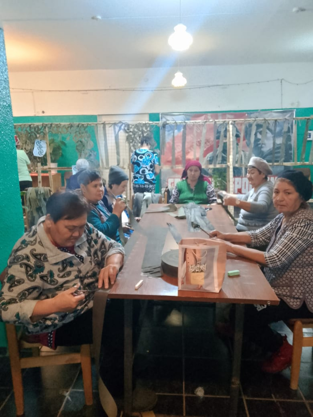 Ходит плести маскировочные сети , плела нашлемники и сеть для них..Сегодня на гумконвои передала семь пар носков .Всего связала и отправила Вера Михайловна 50 пар теплых шерстяных носков !