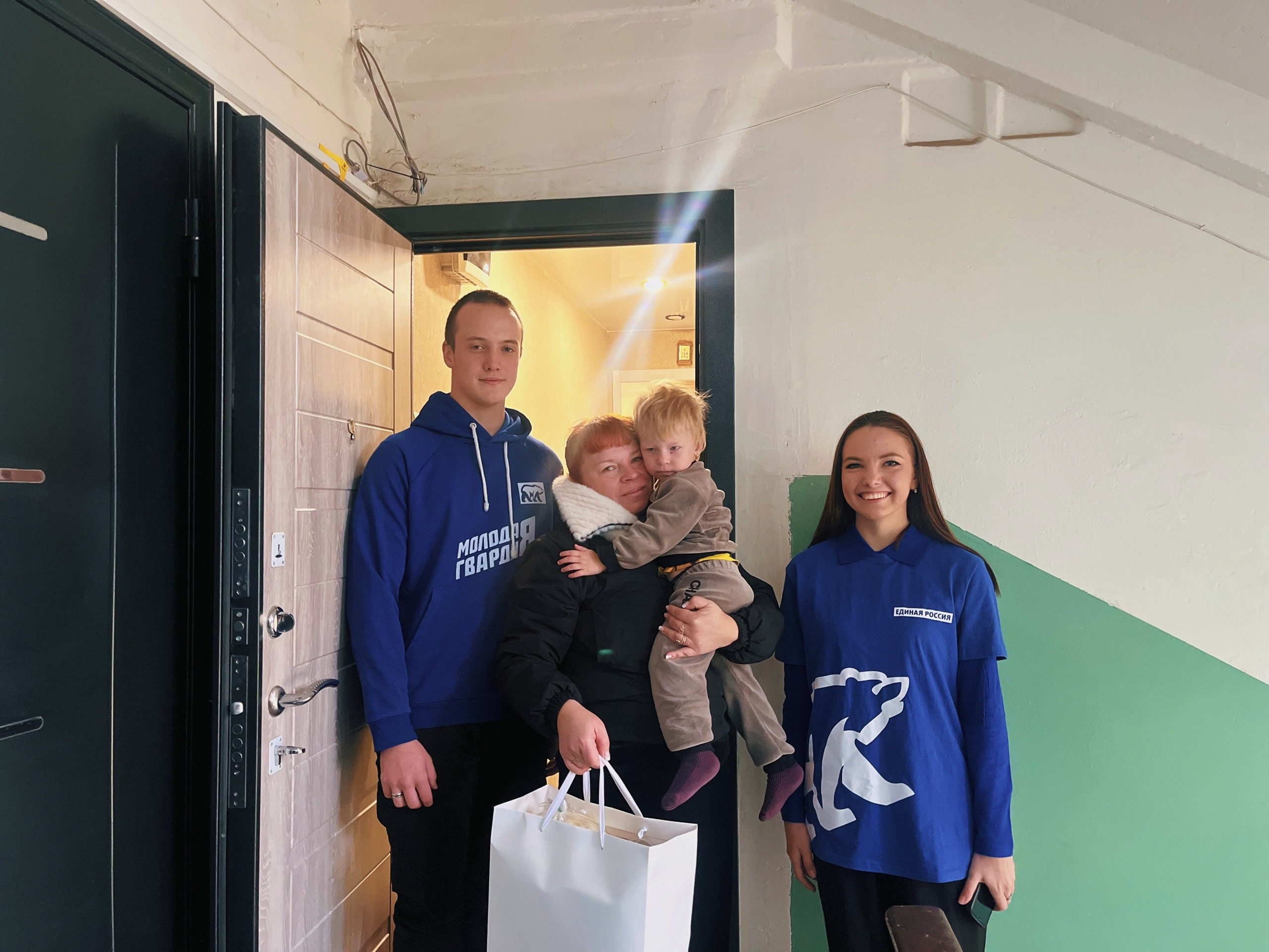 Вручили сладкие подарки и пообщались с членами семьи.