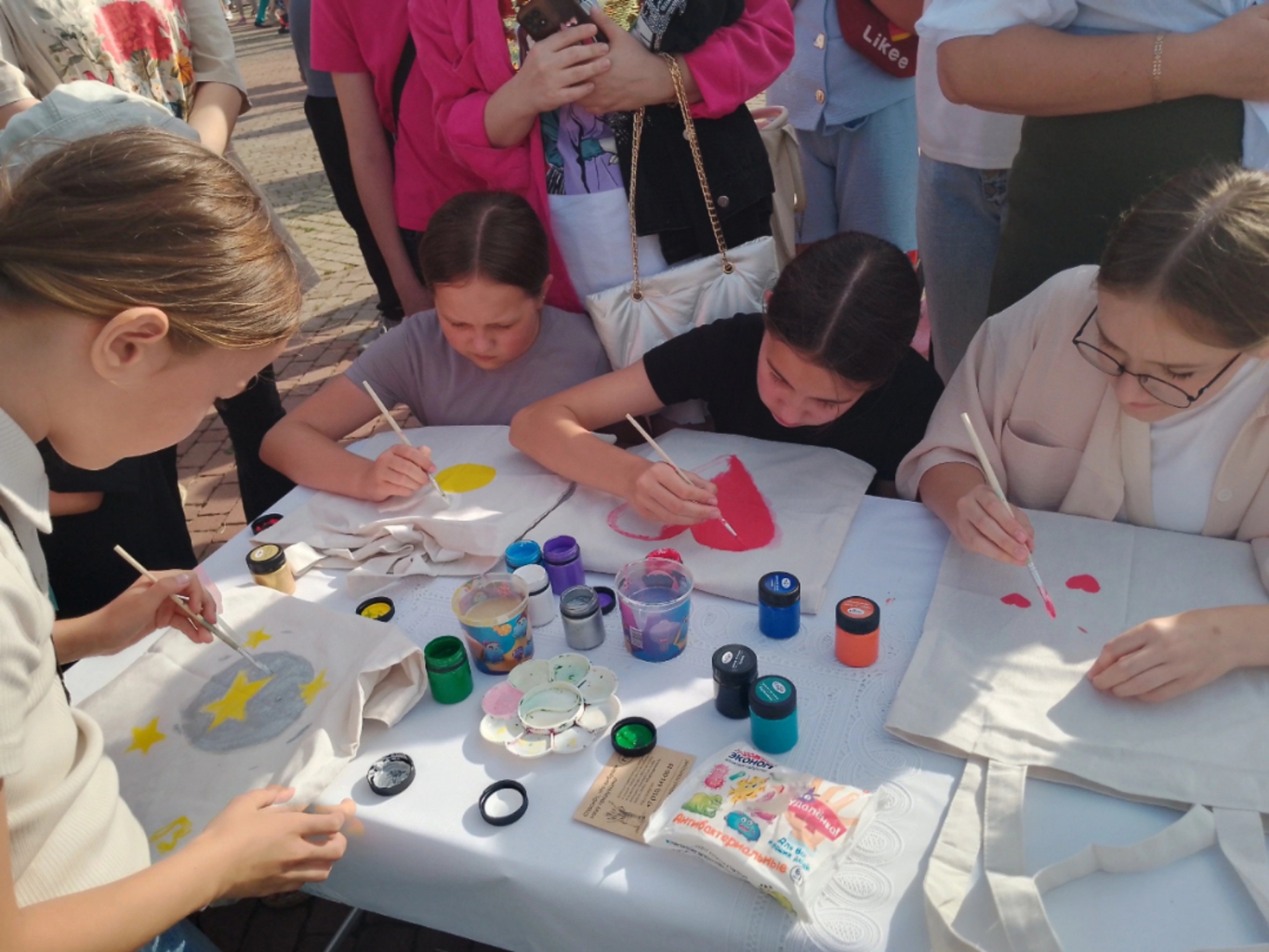 В праздник в День семьи провела экологический мастер - класс по росписи шопперов при поддержке