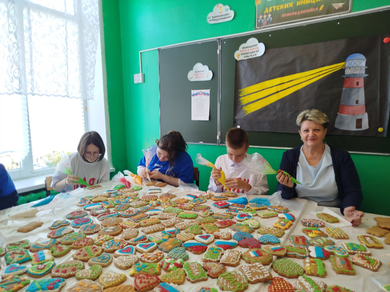 Вместе с коллегами-волонтерами школьного отряда "МАЯК"и активистами первичного отделения Движения Первых сделали и расписали имбирные пряники, которые отправили военнослужащим в зону СВО