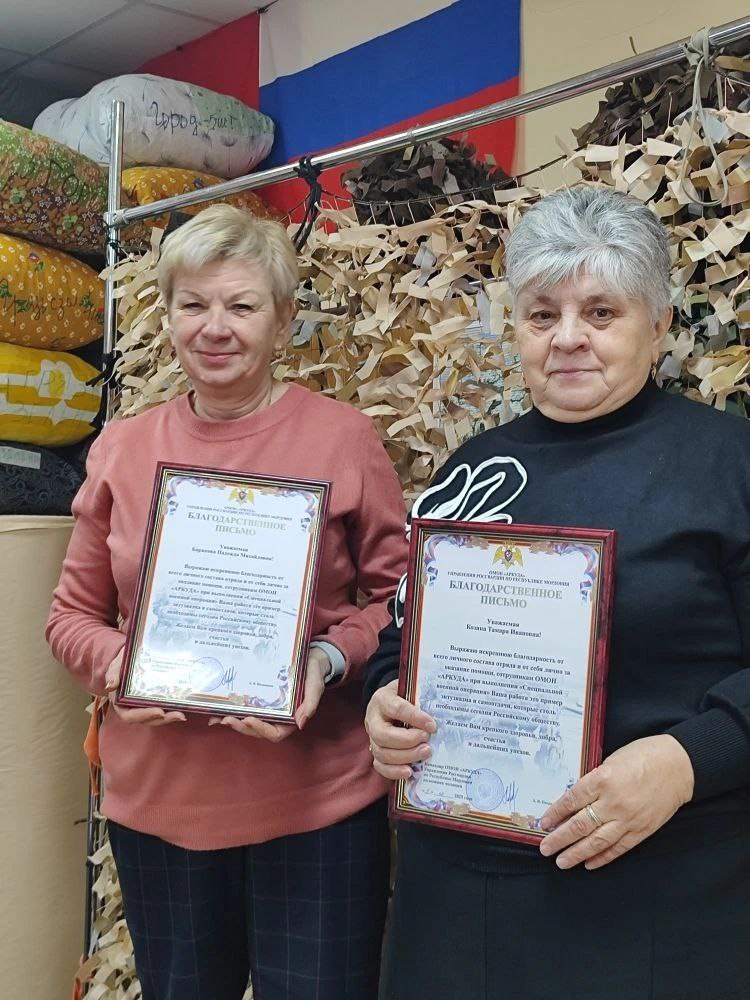 В канун праздника еще одна награда от командира ОМОН РМ вручили Благодарности: Козиной Тамаре Ивановн и Барановой Надежде Михайловне За ежедневный труд и в штабе и дома, спасибо!