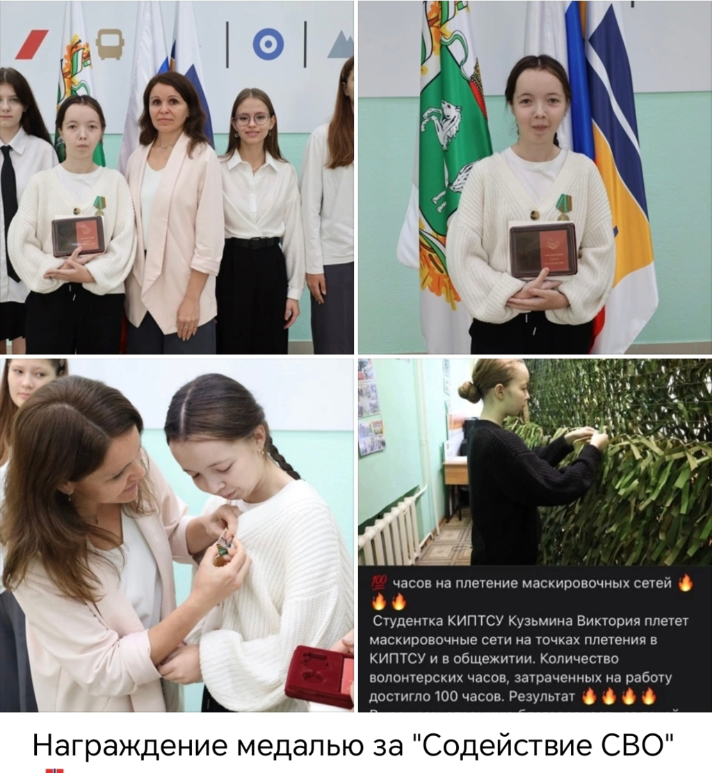 Гордимся каждым нашим волонтером, который не остаётся равнодушным и помогает бойцам СВО. Виктория участвует в плетении маскировочных сетей. Помогает в организации мастер классов для студентов.