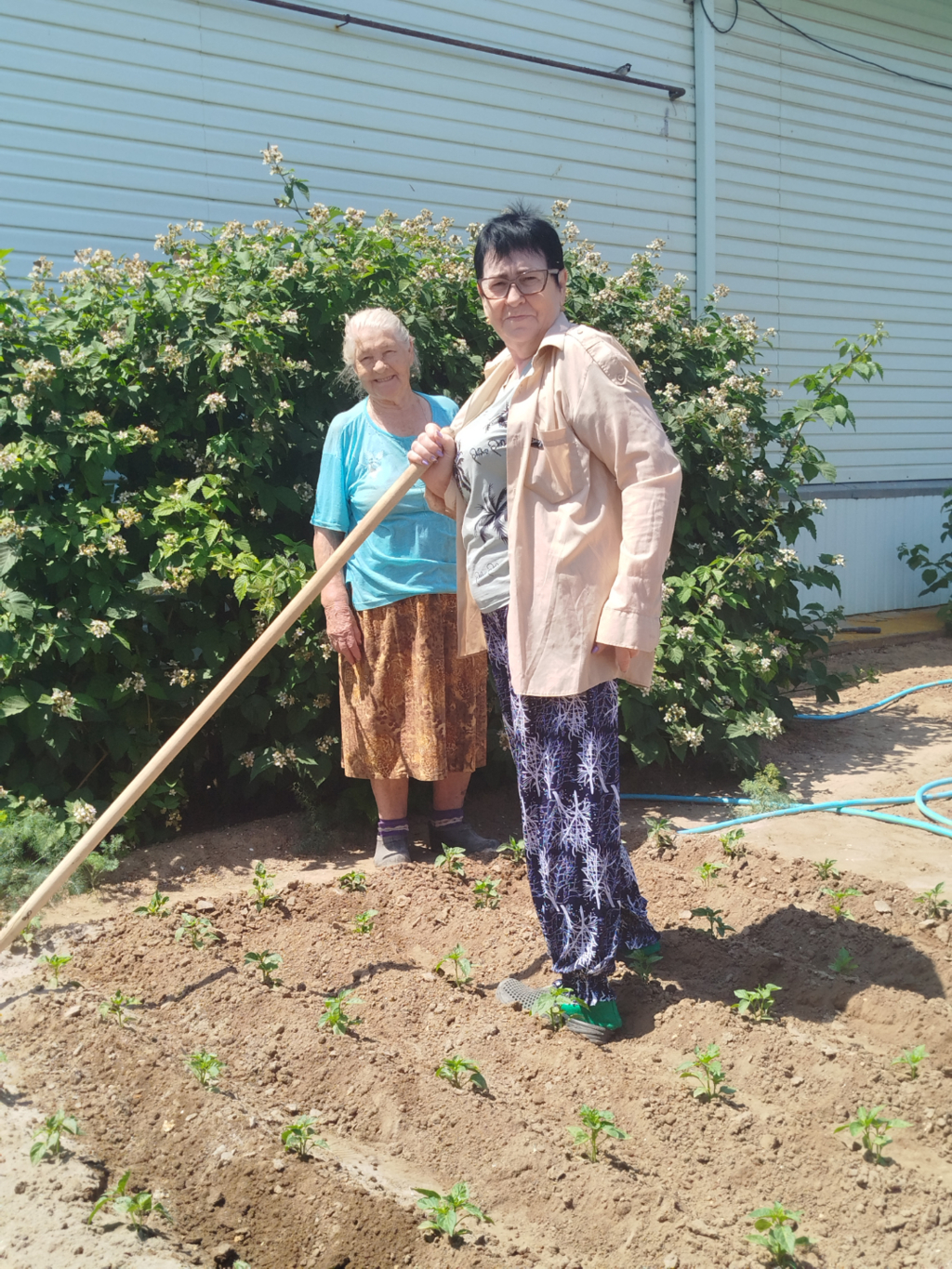 Весна ,дел много ,моя соседка Валентина Яковлевна ,ей 87 лет любит порядок ,я пришла ей помочь ,подмела у двора. почистила в клубнике и подбив ее .Дело сделано .