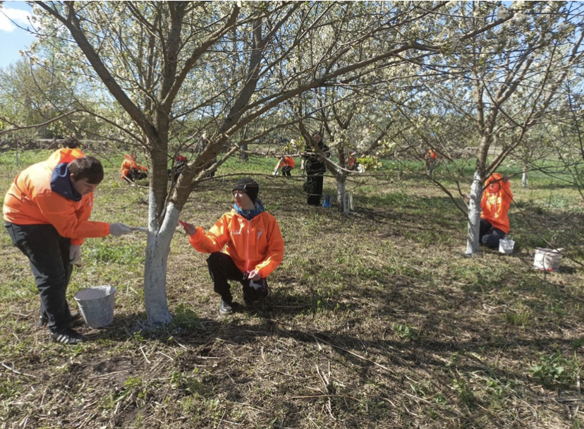 В предверии Дня Победы побелили деревья и обкосили Сад Победы,посаженный в честь ветеранов Великой Отечественной войны в рамках моего одноименного проекта.Саду уже 10 лет, он цветёт,напоминает о великом подвиге героев.